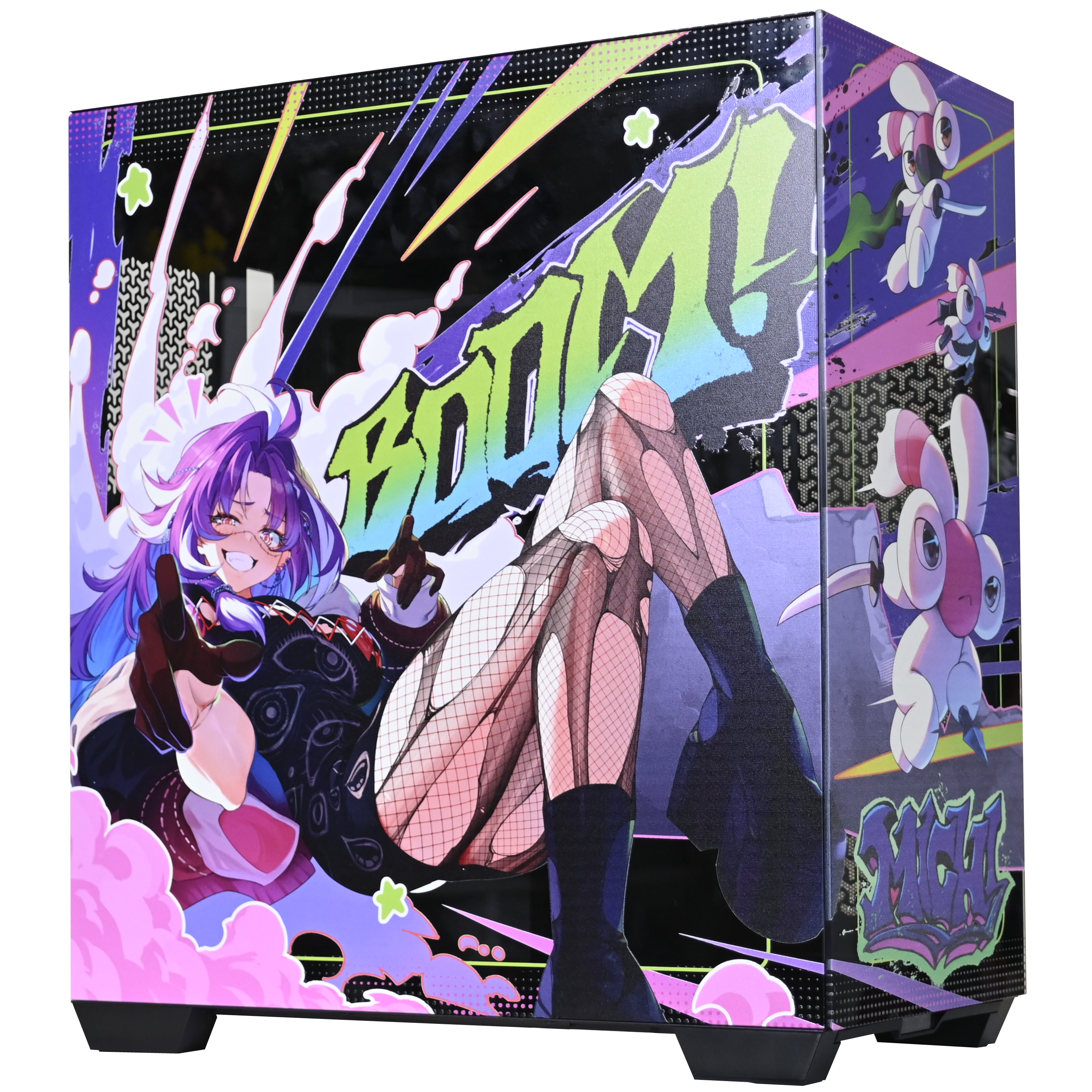 Enter the stitched-up world of Michi Mochievee, in this exclusive collaboration. This limited-edition PC case is wrapped in full-body custom artwork featuring Michi Mochievee and her hauntingly adorable sidekick Jared, brought to life in vibrant, high-res detail.