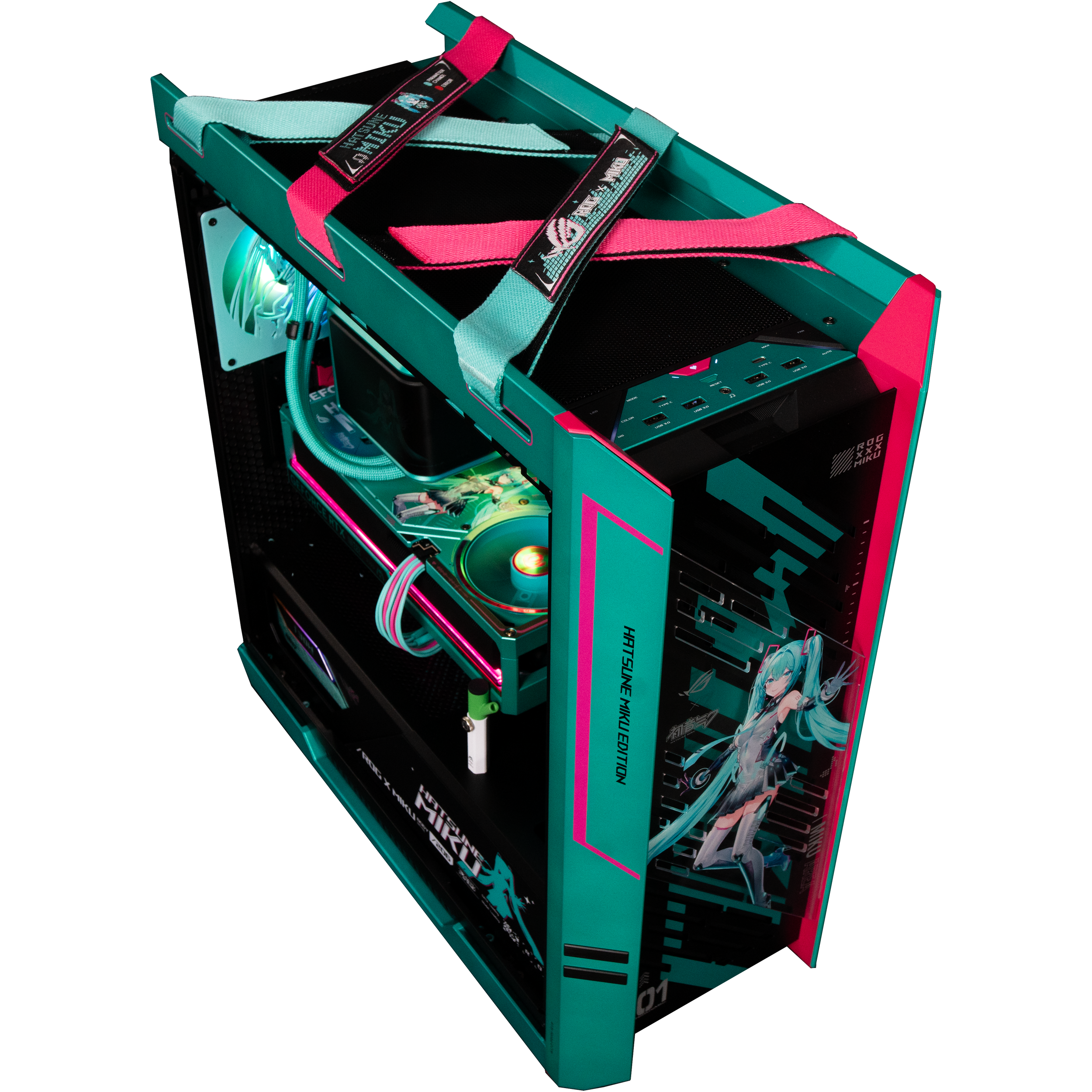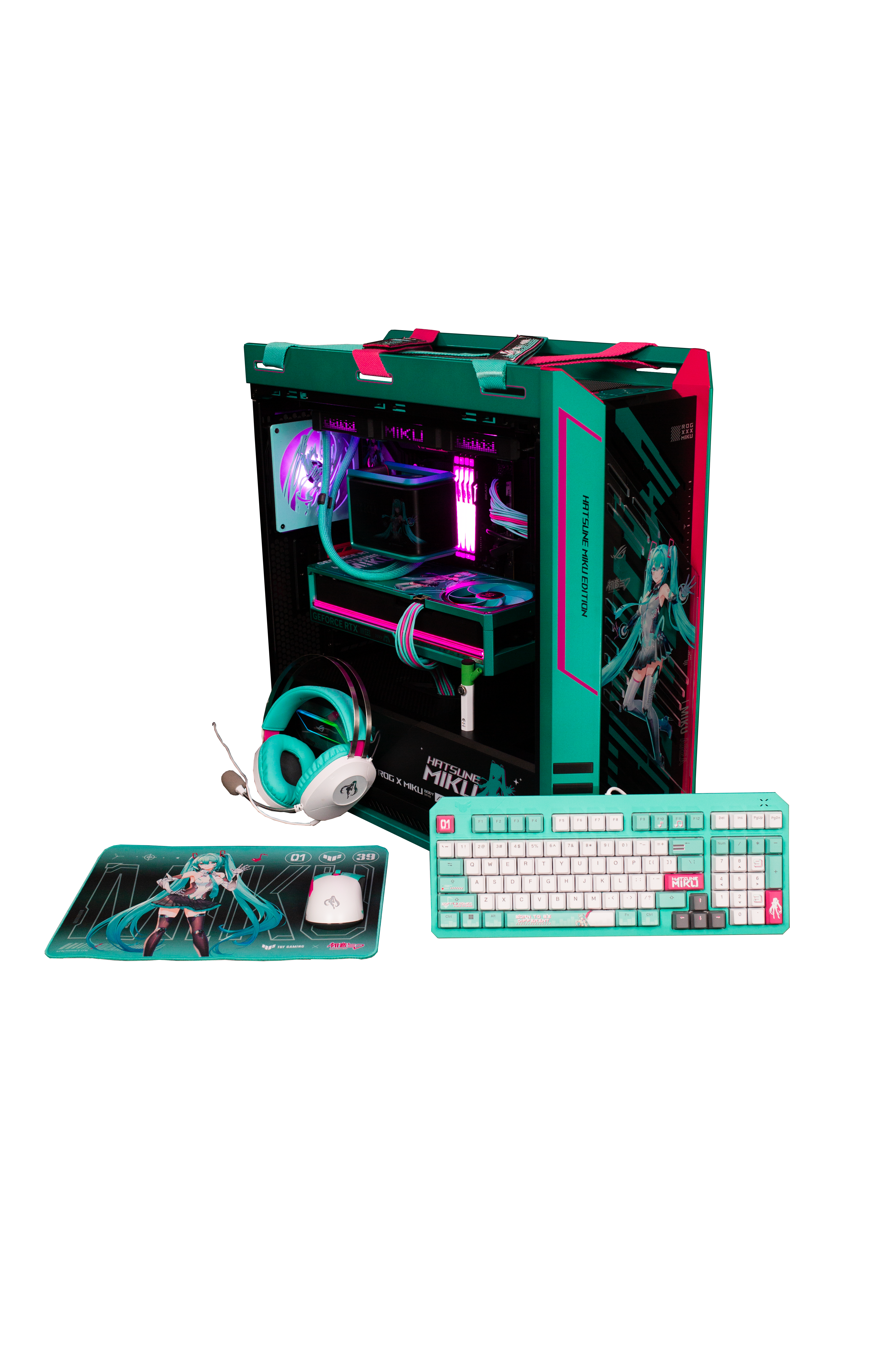 Experience the perfect fusion of cutting-edge performance and digital artistry with the ROG Hatsune Miku Edition Gaming Bundle. This exclusive collection celebrates the iconic virtual idol Hatsune Miku, blending her futuristic design with Republic of Gamers engineering excellence. Each component features custom artwork, glowing teal accents, and meticulous craftsmanship for gamers who want power that performs and style that sings.